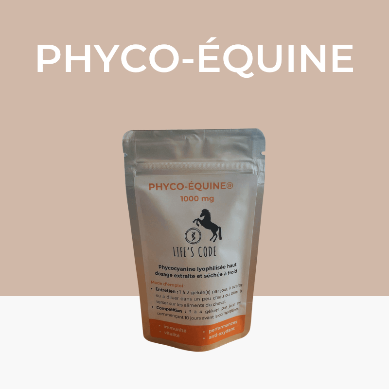 Phyco-Équine® es un suplemento de ficocianina de calidad médica (índice de pureza 2,82), formulado específicamente para optimizar la rendimiento, recuperación y el bienestar general de los caballos de deporte, durante un periodo de competición, convalecencia o preparación.