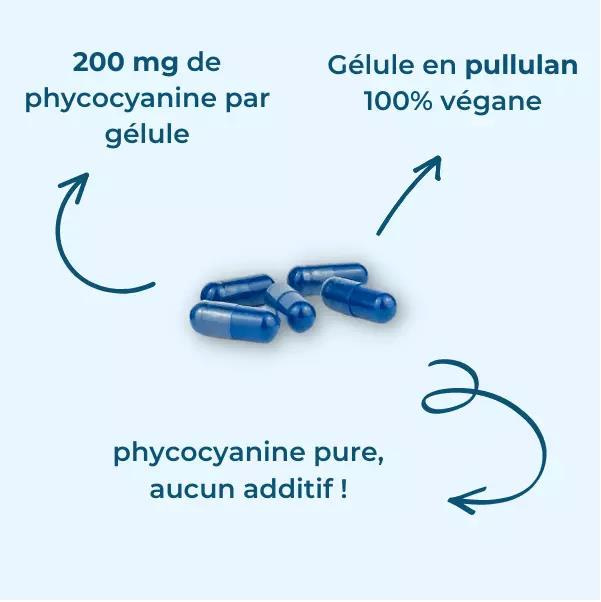 Consejo: Abra las cápsulas y vierta el contenido en agua antes de tomarlas, para aprovechar el magnífico color de la ficocianina y optimizar su absorción.