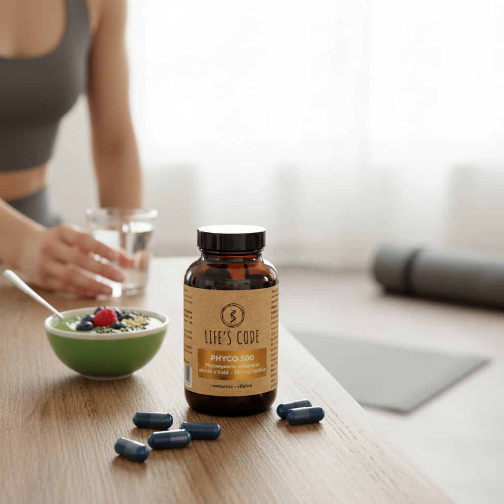 Es aconsejable respetar una ingesta diaria mínima de 3 meses para permitir a Phyco 500 informar de forma sostenible al organismo a lo largo de varios ciclos celulares.