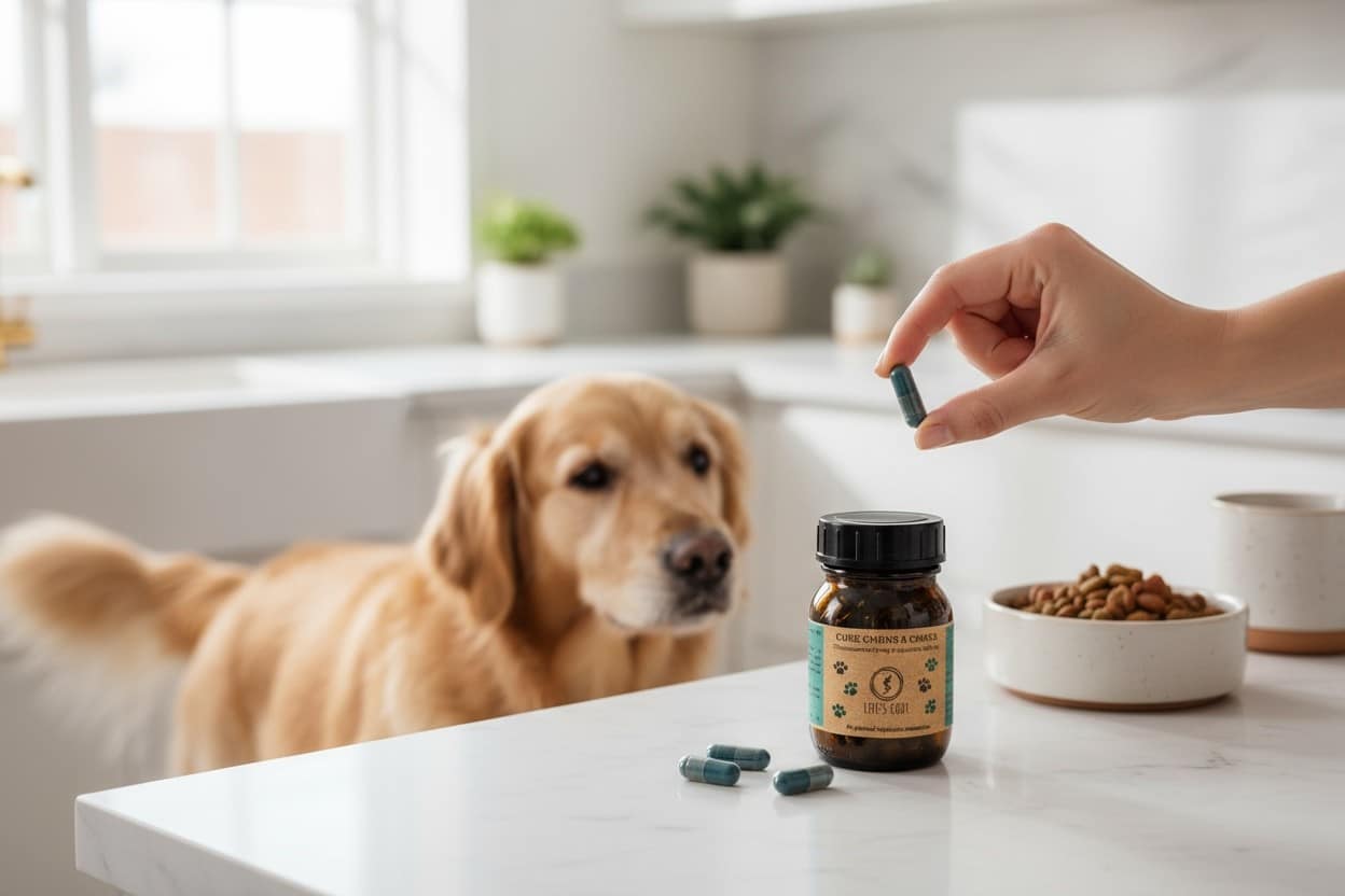 Astuce : Ouvrir et verser le contenu d’une/des gélule(s) de phycocyanine dans l’eau ou dans la nourriture de votre compagnon.