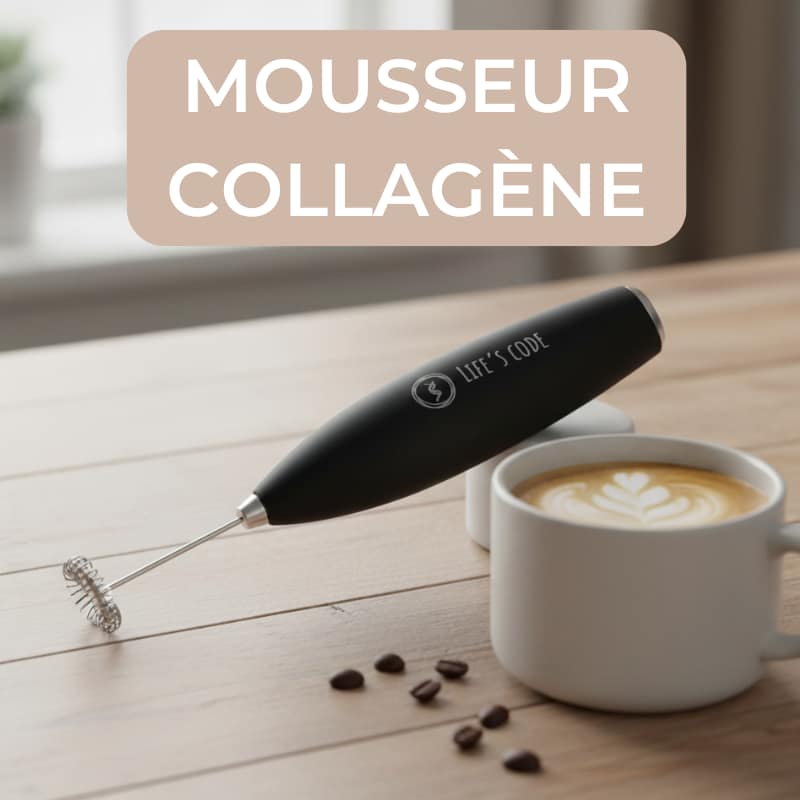 Transformez chaque prise de collagène en un véritable moment de plaisir grâce à notre mousseur collagène. Conçu pour dissoudre parfaitement les poudres (collagène, matcha, champignons adaptogènes, spiruline, etc.), il permet d’obtenir une texture lisse, homogène et agréable en quelques secondes seulement.