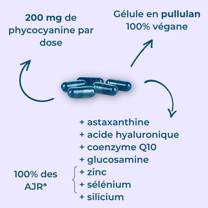 Il est conseillé de respecter une durée de prise journalière de 3 mois minimum pour permettre à Phyco-Sublime d’informer durablement le corps sur plusieurs cycles cellulaires.